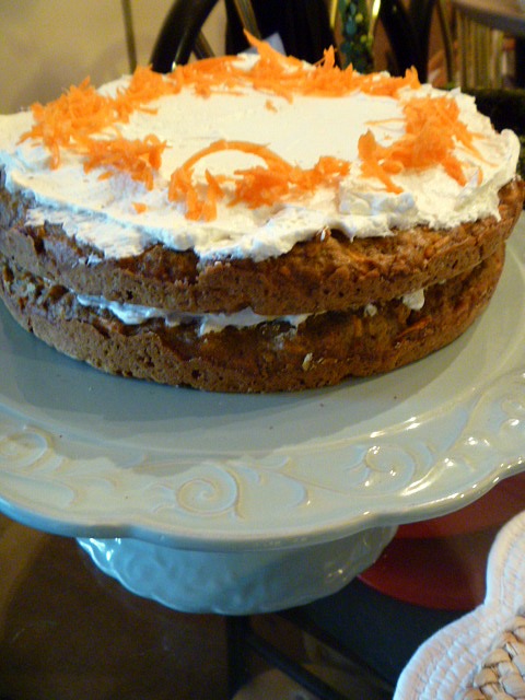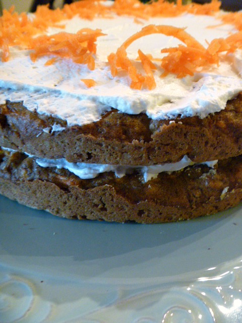 Nothing says spring like carrot cake in my book. One of my favorite cakes, that I rarely get a chance to make. But the craving comes every spring. This year I caved in and made this slightly adapted version from Cooking Light. It's a little healthier than the normal carrot cake which was my justification. (A girl's gotta have a justification sometimes!)