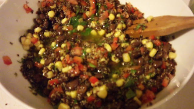 For Quinoa: Cook in a small saucepan according to package directions. Set aside and allow to cool.