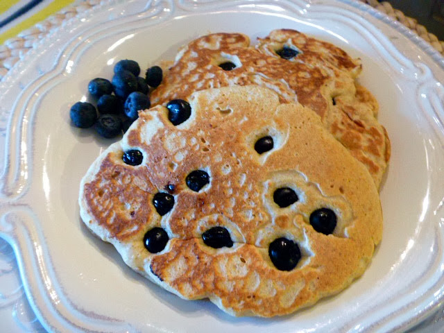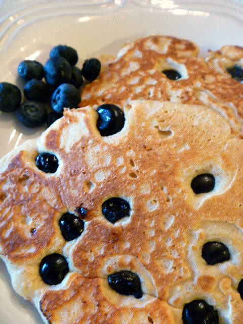 A the bonus?  They are lower in calories...yippee!  Yep, that's right, you heard it...a light version of your favorite Blueberry Pancakes.