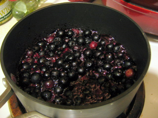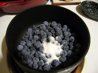 To make the compote you will need to add the blueberries, lemon juice, and 1 T. Splenda to a medium pot over medium high heat.