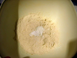 So now mix together your dry ingredients in a medium bowl. The flour, baking powder and soda, remaining sugar, and salt.
