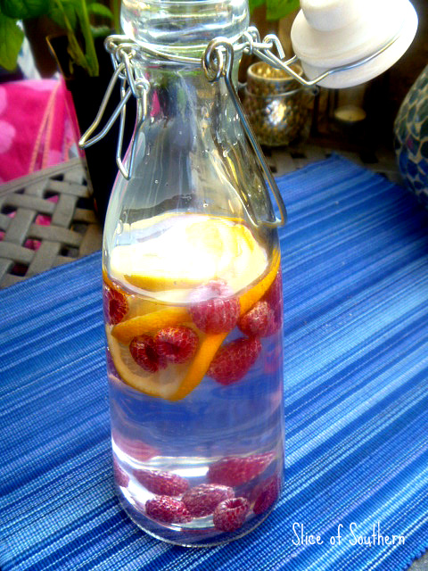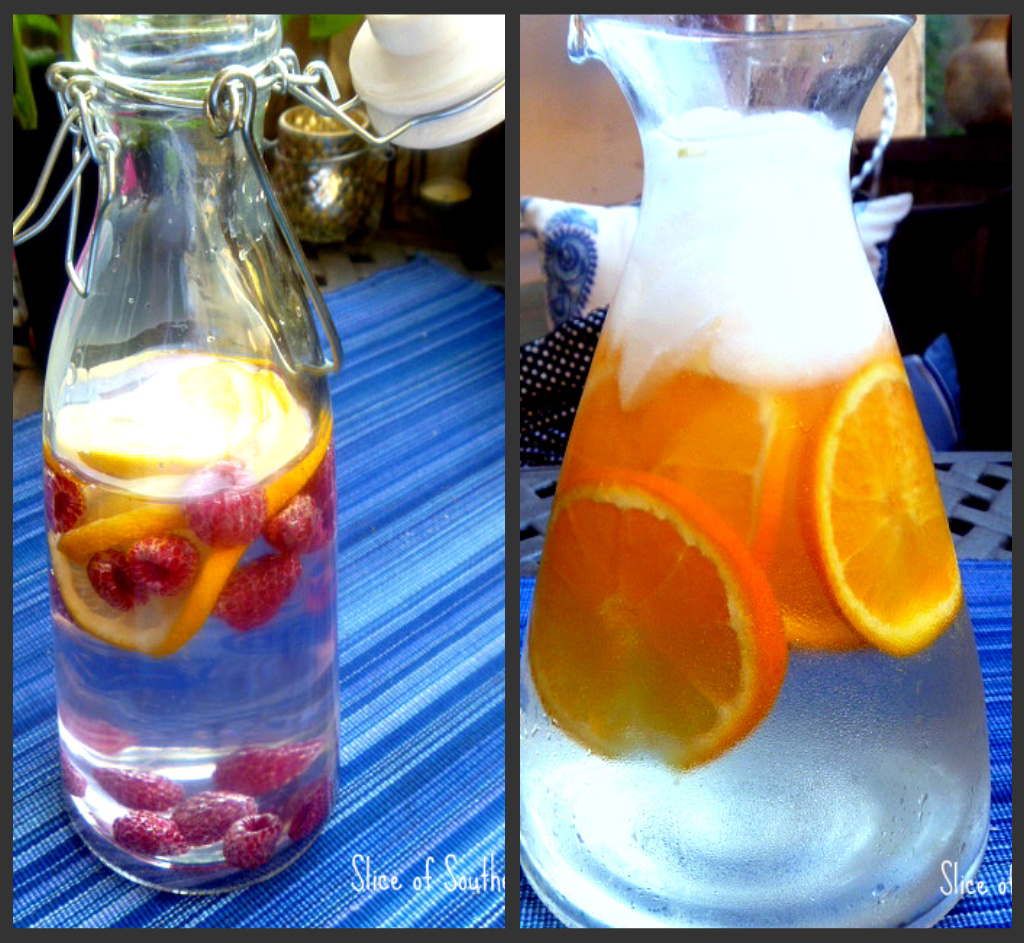 For a cool and refreshing beverage, nothing is better than naturally flavored water. Two fruit combinations that we enjoy are lemons, raspberries, and water. and oranges and water. This method gives the water a hint of fruity flavor, and it tastes great! Make sure to chill the water with the fruit for about an hour before serving.