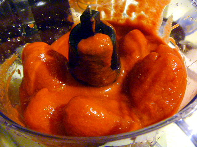 Pulse the tomatoes. I use the pulse so I can watch them and obtain the chunkiness or texture that I like. I leave mine a little bit chunky.