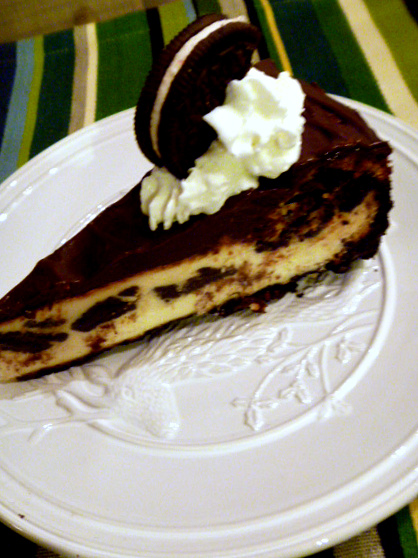 For those that want a more lower carb cheesecake or to just reduce the carb count you can substitute the sugar for Splenda, and you can use Sugar free oreos for the crust. You will still have some carbs with the Joe Joe's and the chocolate, however, the overall count will be reduced. I've also added neufchatel cheese instead of the cream cheese to keep the fat grams down as well. But trust me, this is still a very rich dessert!