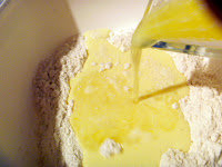 cider, buttermilk, eggs and 2 Tbsp. of the melted butter. Mix until combined.