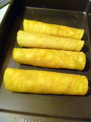 This time I'm taking a favorite dish, taquitos, and lightening it up! How do you do that, you say? Well, taquitos are usually fried....so why not BAKE them?