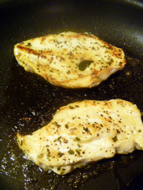 oil to a large skillet and heat of medium high heat. Remove chicken from marinade and season with