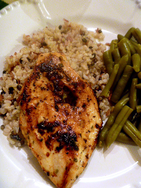 So I pulled my chicken breasts from the freezer, got out some rice I had on hand, and used my girlfriend's lemons. Don't let the simple recipe fool you, the flavors pack a big punch to the chicken. So come on and try this dish, you'll love the flavors! And, if you're feeling the need to save a little money and have a stockpile of food like I do, try Pantry Shopping. It's a good "intention" to have!