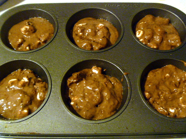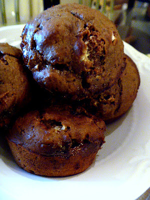 I do have to warn you, these muffins are not overly sweet. They have a definite darker chocolate flavor. So if you like them sweet then you might want to add more sugar, or try one of my other muffin recipes. You would think that the marshmallow lend more sweetness to the muffins, but alas...they don't. So remember, I told you...these are not a prominently sweet muffin!