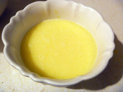 In a small bowl combine your we ingredients (eggs, milk, oil) whisking to blend.