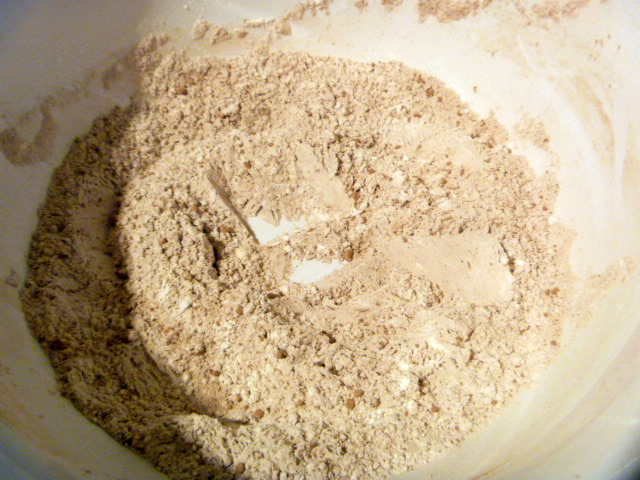 Mix your dry ingredients together in a medium bowl. (Flour, cocoa, baking powder, and salt)