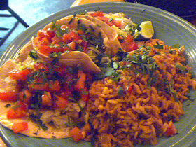 I had the Lime Chicken Tacos and Spicy Rice.....man this dish was spicy!  See how much food they give you?  Wow!