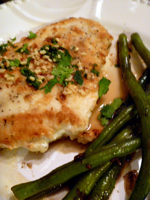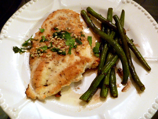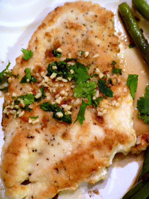 Such is today's dish. A prime example of taking a basic, classic chicken scaloppini and incorporating regional flavors to turn it into a new, fresh dish.