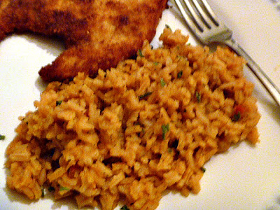 A few days ago I brought you a wonderful Mexican chicken dish called Chicken Milanesa. What a great way to eat chicken! An even better treat is the side dish. My Easy Mexican Rice is the perfect accompaniment for many dishes. You know that rice goes with just about everything! Being a starch it is a perfect foil for all types of protein.