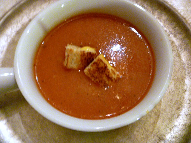 Easy Tomato Soup with Grilled Cheese Croutons