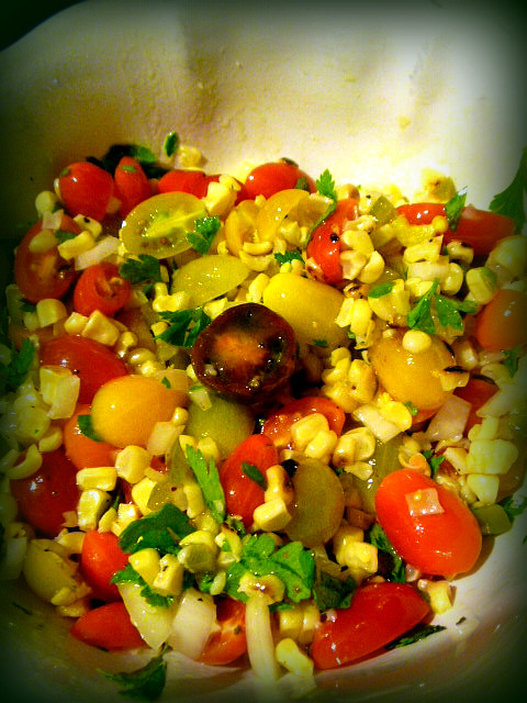 Heirloom Cherry Tomatoes and Grilled Corn Salad