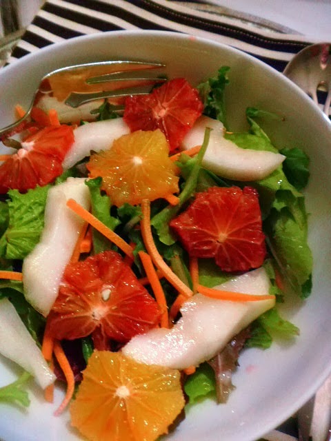 So it's time to make a winter citrus salad.  A Blood Orange and Pear Salad to be exact.  Sweet and tangy come together to form a flavor profile that is bright and light during the winter months.  What better way to use winter fruits, especially since I love them in salads.