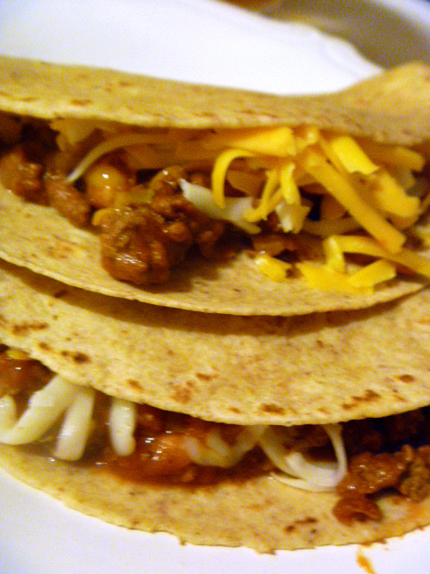 Need something fast and easy to make. These tacos fit the bill. These are a different spin on your normal "taco". These are tex-mex in flavor and a little more messy, due to the saucier texture of the filling. Since they are soft tacos they are quick (you don't have to mess with cooking up the shells). The flavor is excellent! Kids will love them, your husbands and boyfriends will love them....MGG did! He told me to put these on the "MGG loves list"! Love those compliments.